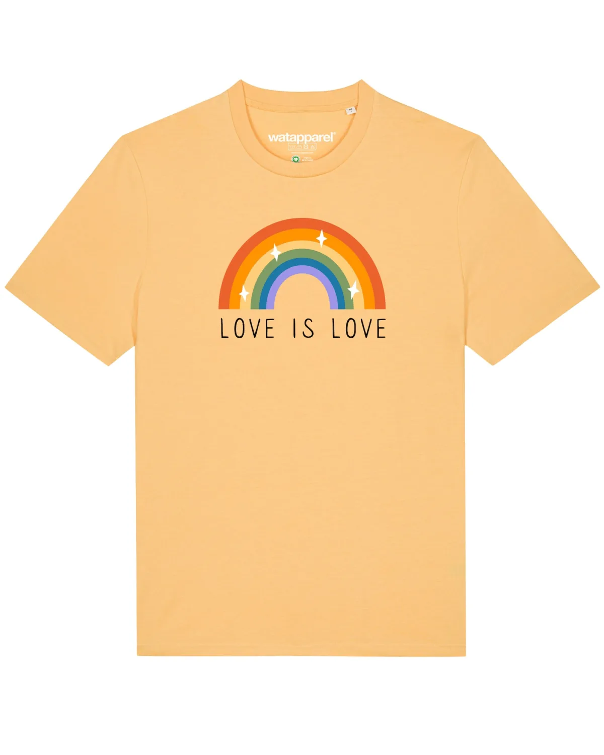 Specificaties: Watapparel Shirt ‘Love is Love’ gemengde kleuren / lichtoranje