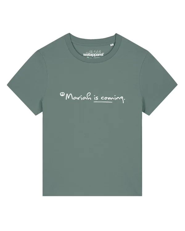 Specificaties: Watapparel Shirt ‘Mariah Is Coming’ jade groen / wit
