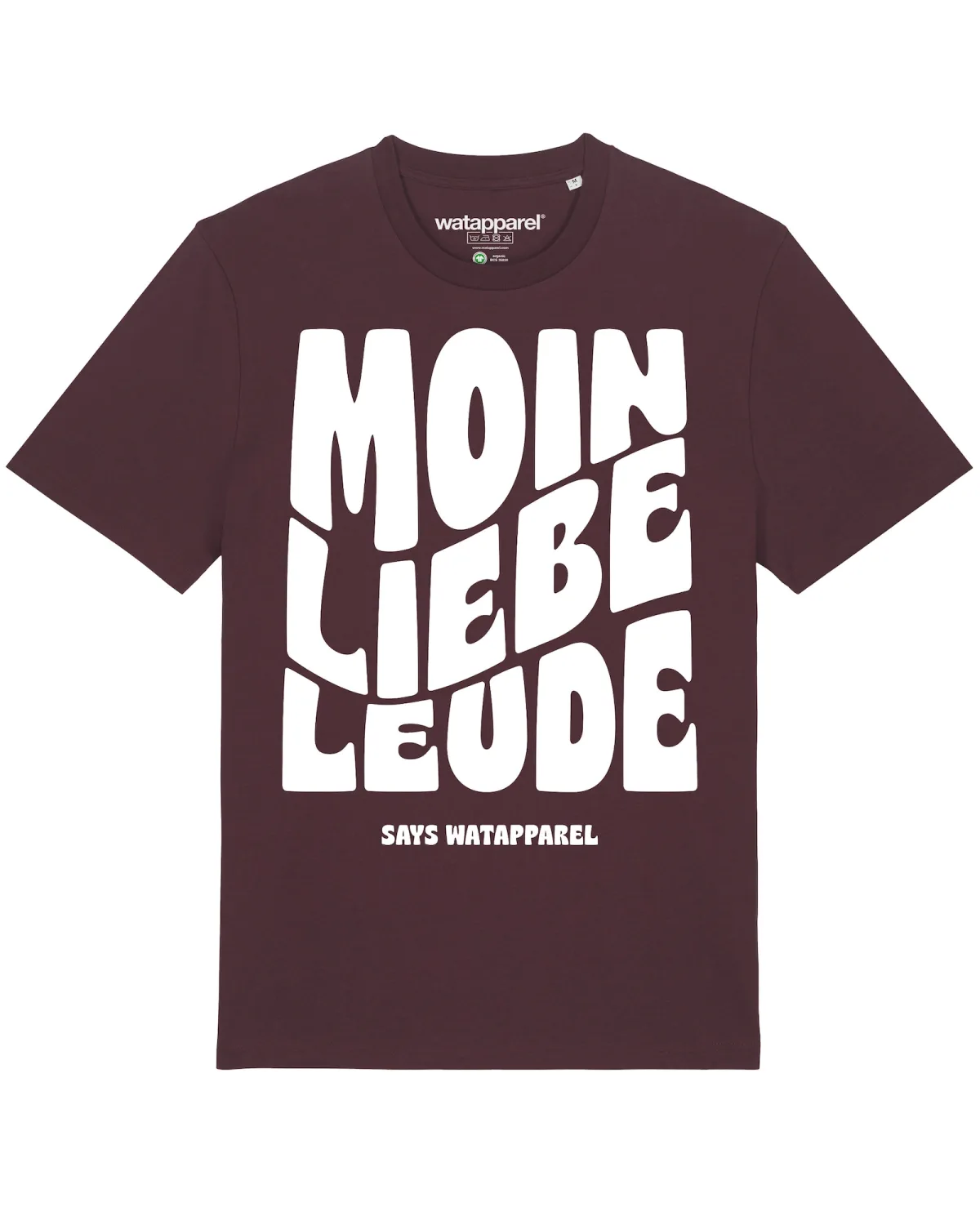 Specificaties: Watapparel Shirt ‘Moin liebe Leude’ bordeaux / wit