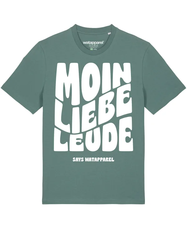 Specificaties: Watapparel Shirt ‘Moin liebe Leude’ groen / wit