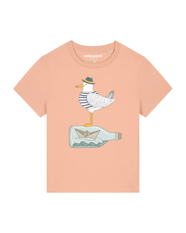 Watapparel Shirt ‘ Möwe mit Hut ‘ gemengde kleuren / abrikoos