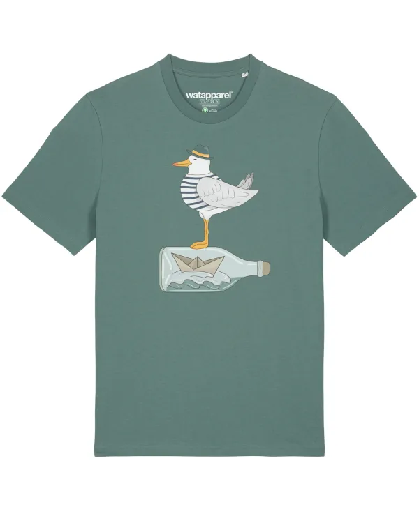 Watapparel Shirt ‘Möwe mit Hut’ lichtgrijs / groen / oranje / wit