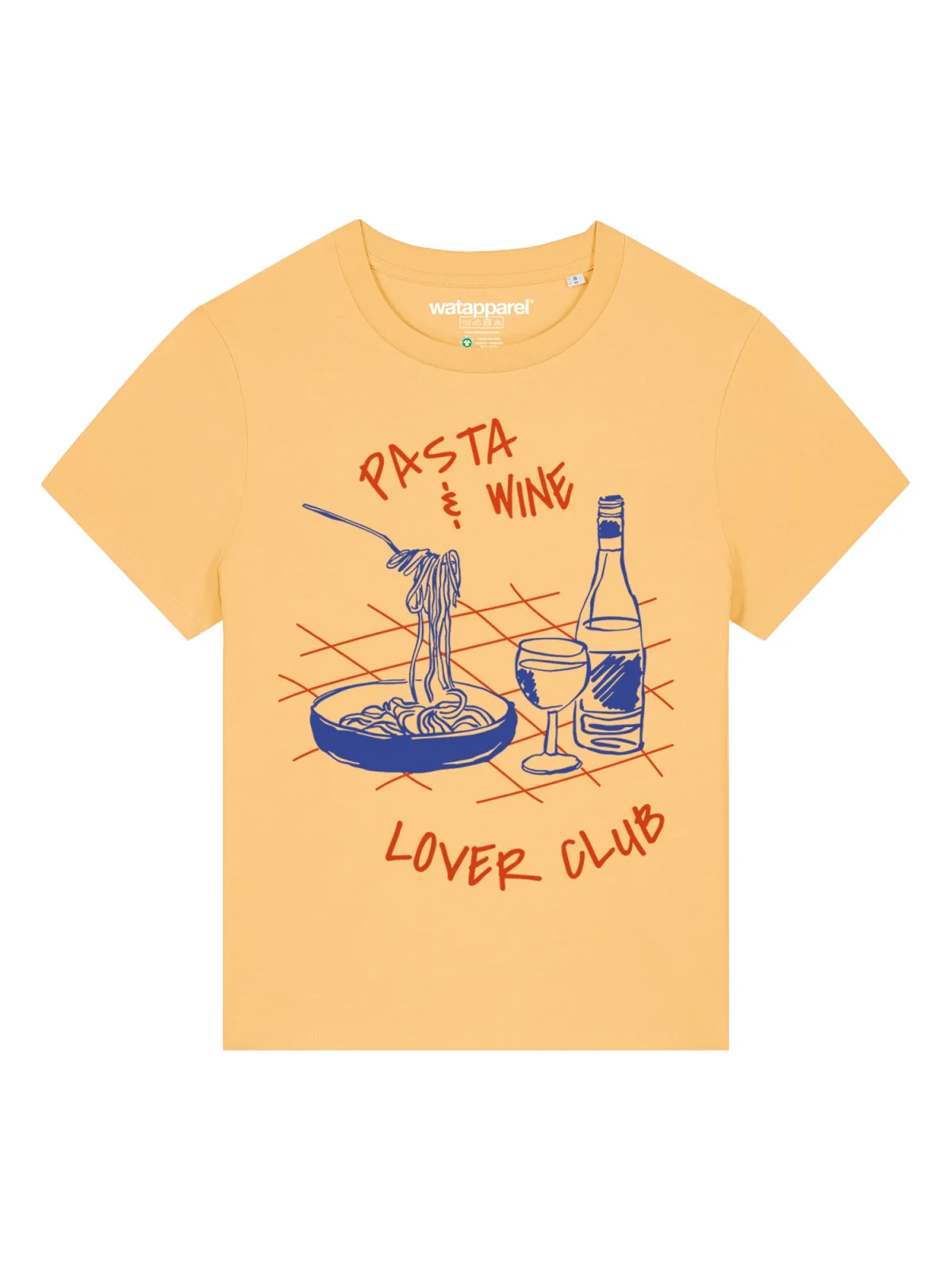 Specificaties: Watapparel Shirt ‘Pasta Lover Club’ blauw / lichtgeel / rood