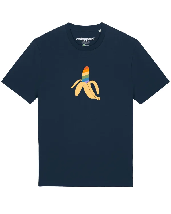Specificaties: Watapparel Shirt ‘Rainbow Banana’ donkerblauw / gemengde kleuren