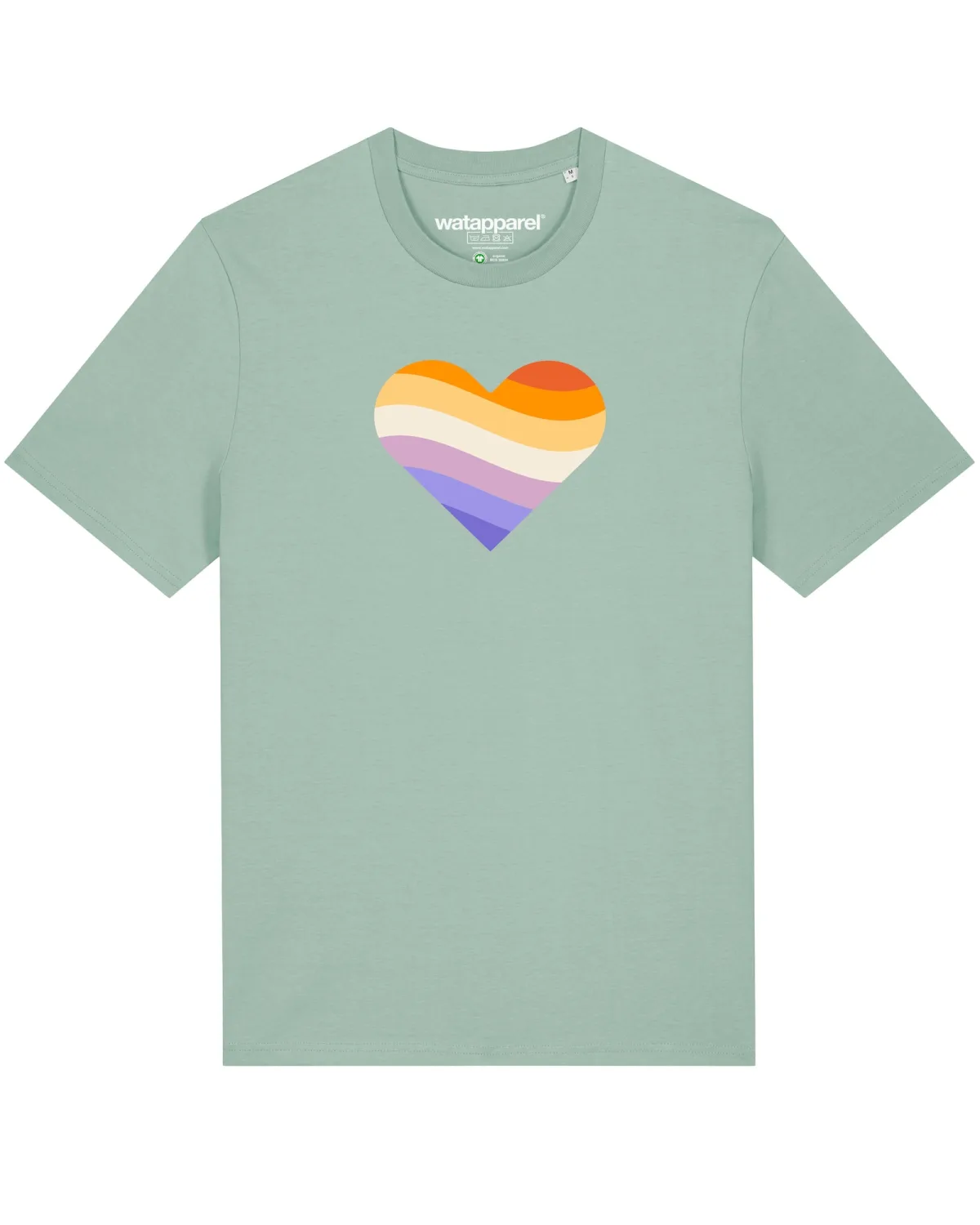 Specificaties: Watapparel Shirt ‘Rainbow Heart’ groen / gemengde kleuren
