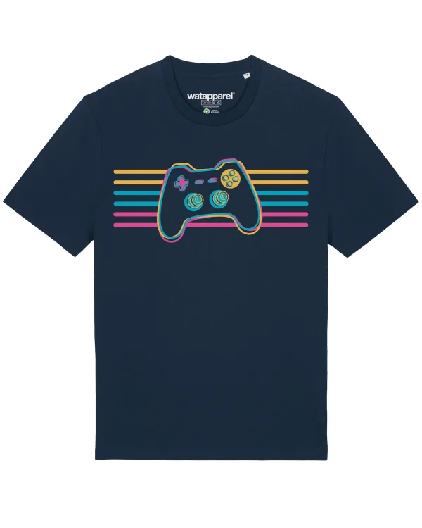 Specificaties: Watapparel Shirt ‘Retro Joystick’ donkerblauw / gemengde kleuren