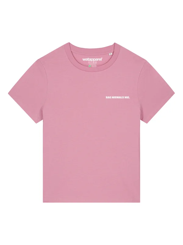 Watapparel Shirt ‘Sag Niemals Nie’ rosa / wit