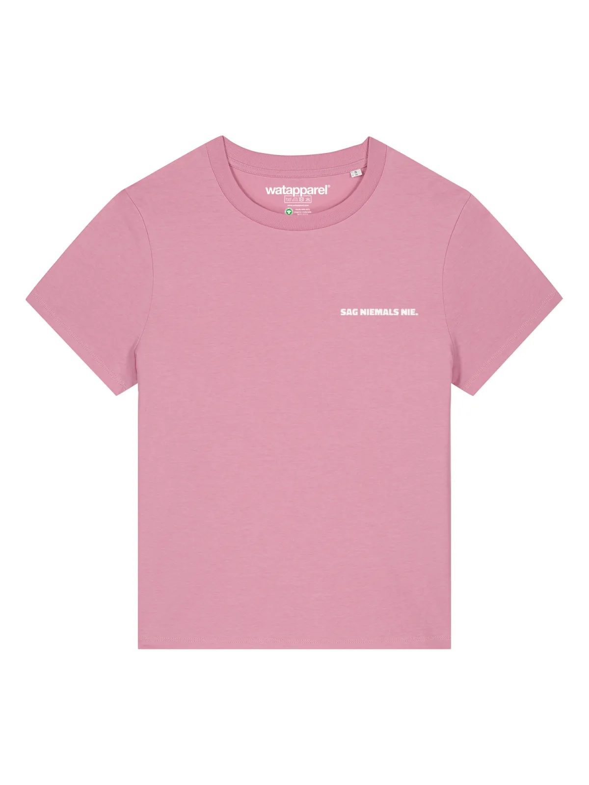 Specificaties: Watapparel Shirt ‘Sag Niemals Nie’ rosa / wit