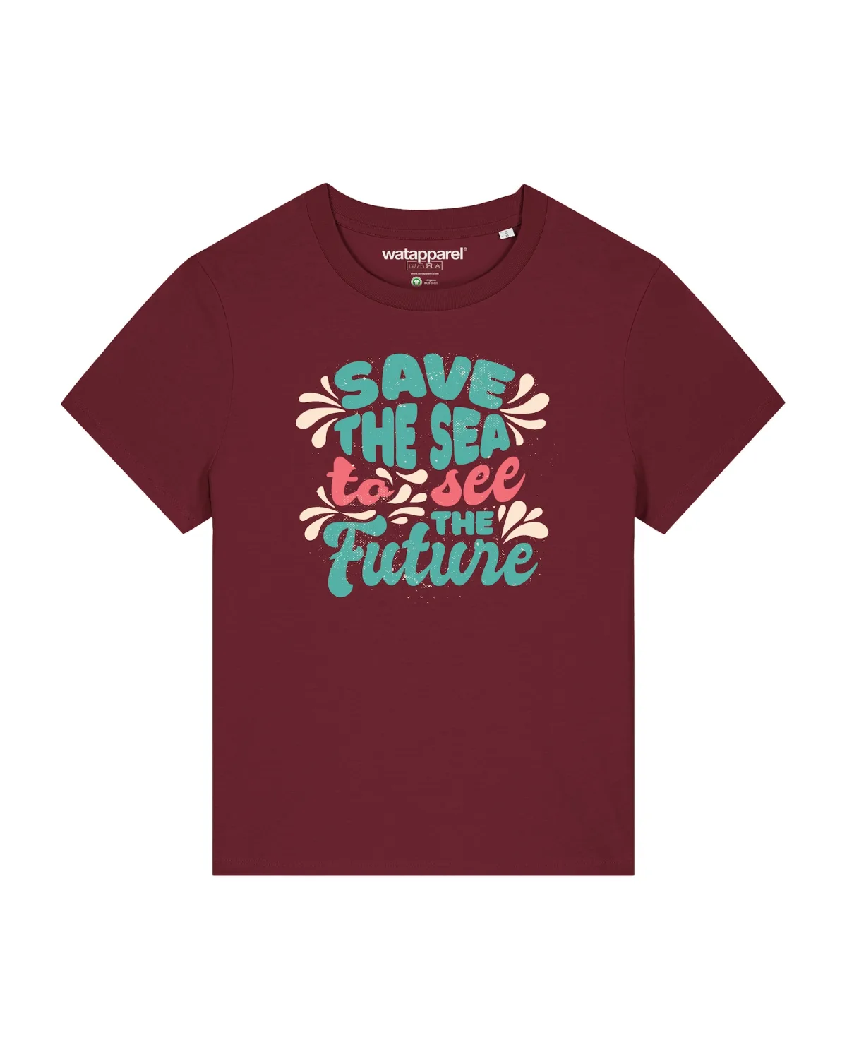 Specificaties: Watapparel Shirt ‘Save the sea’ blauw / rood / bordeaux / wit
