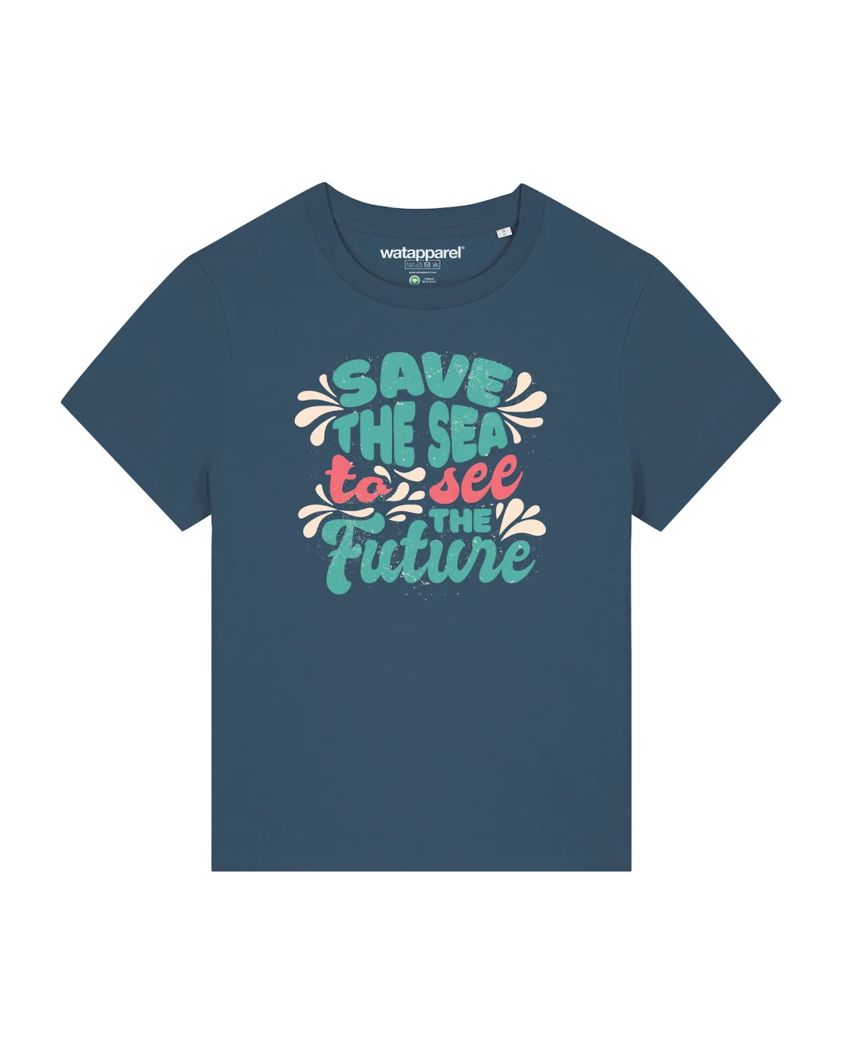 Specificaties: Watapparel Shirt ‘Save the sea’ petrol / gemengde kleuren