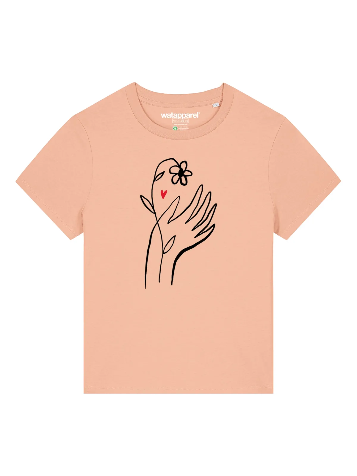 Specificaties: Watapparel Shirt ‘Self Love’ abrikoos / rood / zwart