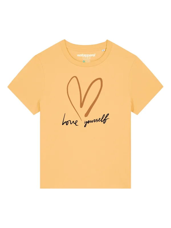 Specificaties: Watapparel Shirt ‘Self love’ bruin / lichtgeel / zwart
