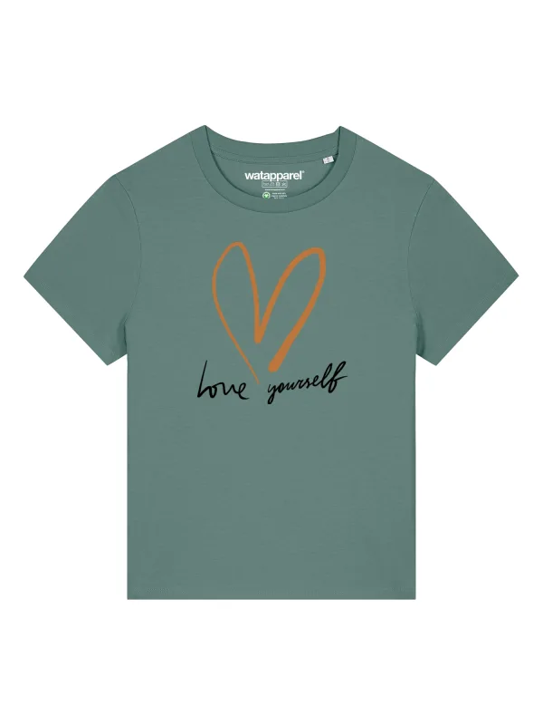Specificaties: Watapparel Shirt ‘Self Love’ smaragd / donkeroranje / zwart