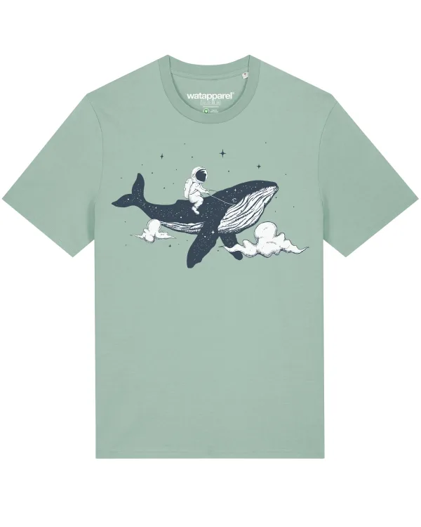 Watapparel Shirt ‘Spacewhale’ turquoise / donkerblauw / zwart / wit