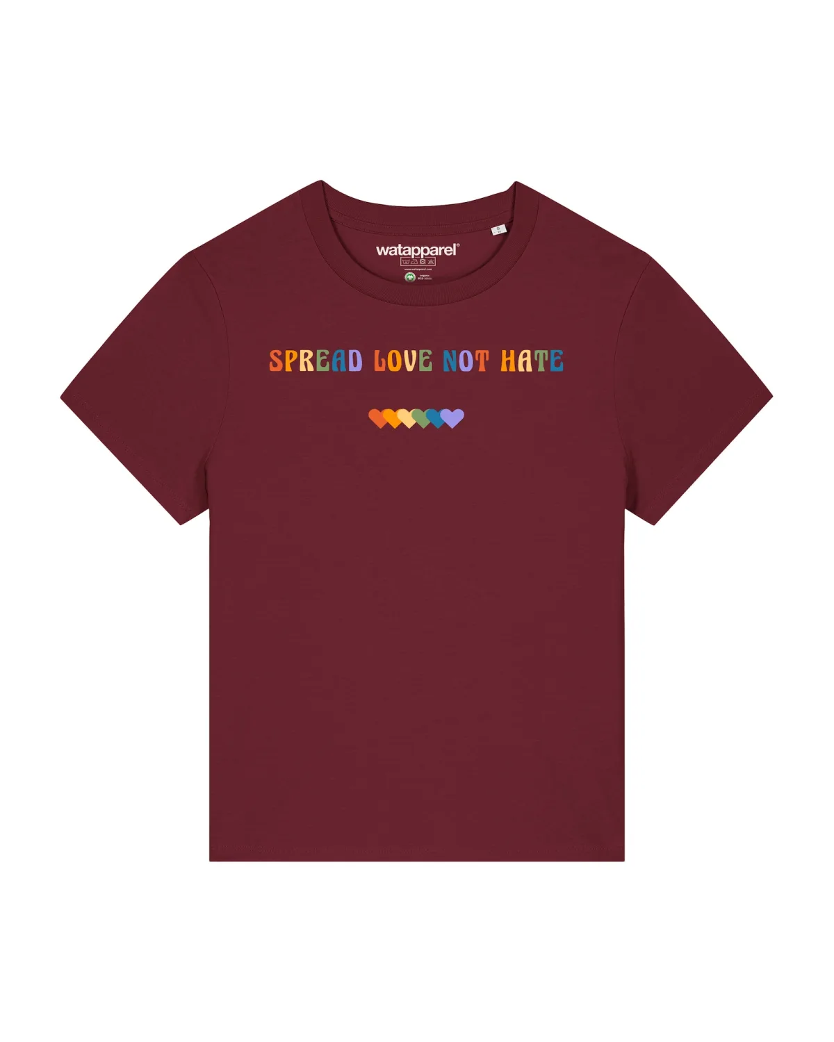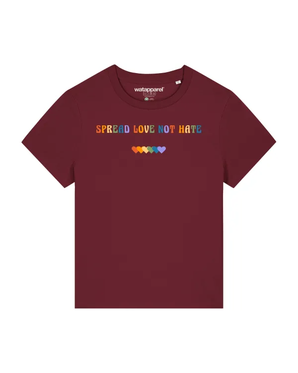 Specificaties: Watapparel Shirt ‘Spread Love not Hate’ gemengde kleuren / bordeaux