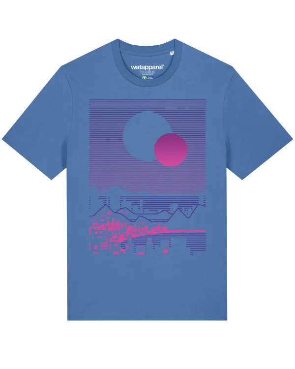 Specificaties: Watapparel Shirt ‘ Sun and Moon Skyline ‘ lichtblauw / gemengde kleuren