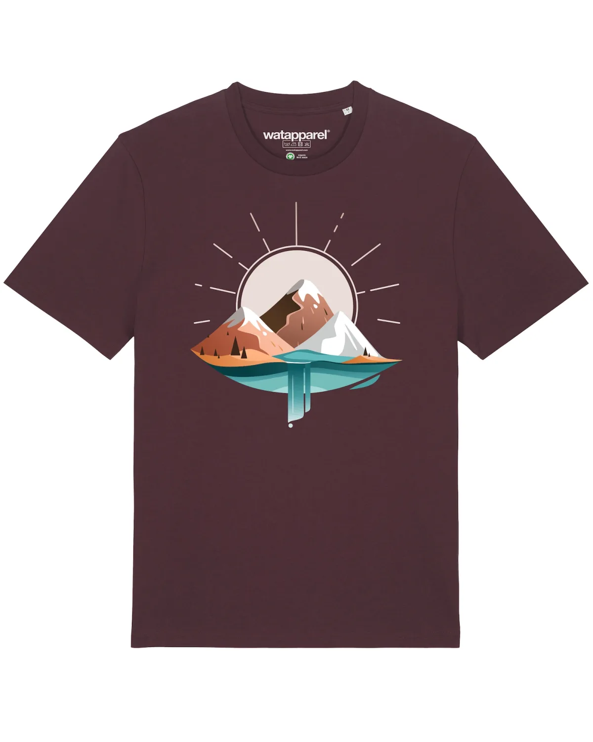 Specificaties: Watapparel Shirt ‘Sunrise & Lake’ donkerbruin / braam / gemengde kleuren