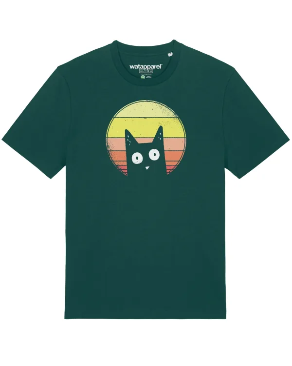 Watapparel Shirt ‘Sunset Cat’ geel / donkergroen / rood / wit
