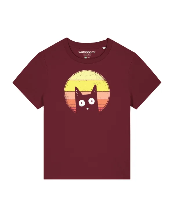Specificaties: Watapparel Shirt ‘ Sunset Cat ‘ gemengde kleuren / bordeaux