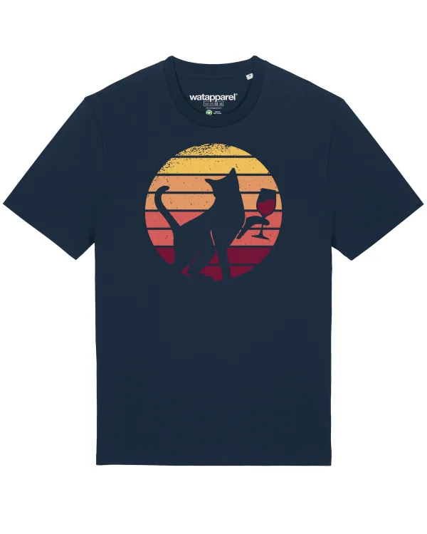 Watapparel Shirt ' Sunset Katze & Rotwein ' donkerblauw /...