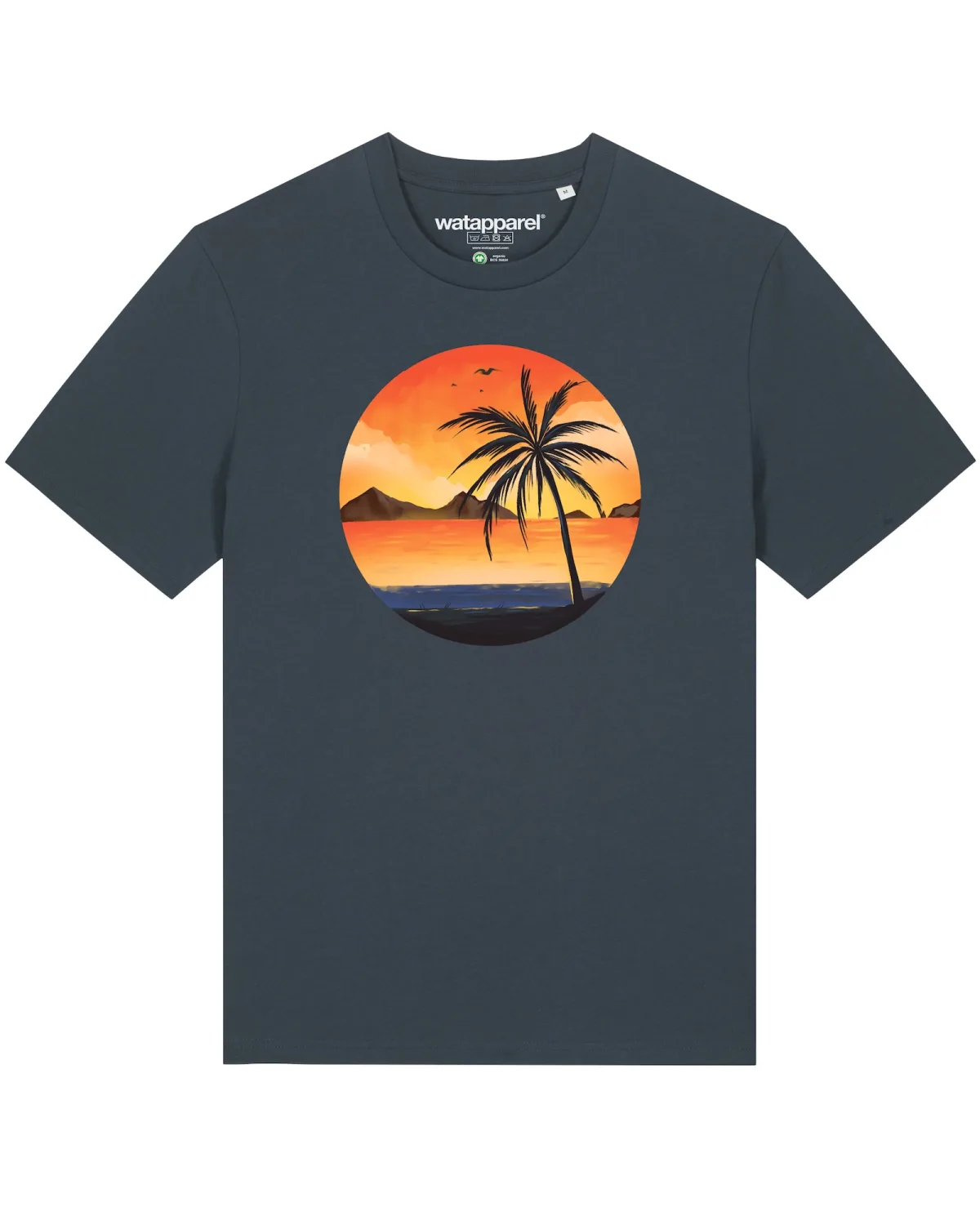 Watapparel Shirt ‘ Sunset on palm beach ‘ antraciet / gemengde kleuren