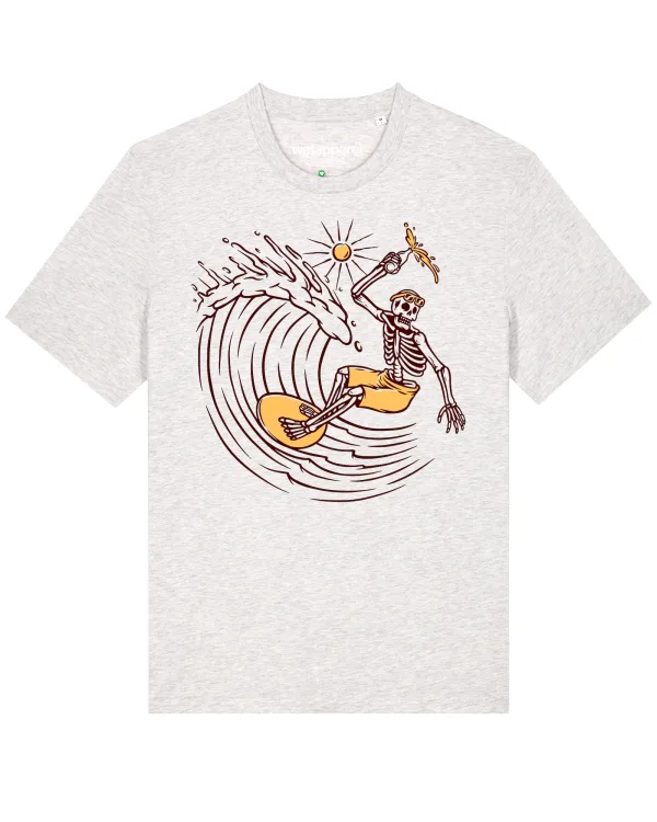 Specificaties: Watapparel Shirt ‘ Surfing for life ‘ geel / grijs gemêleerd / zwart
