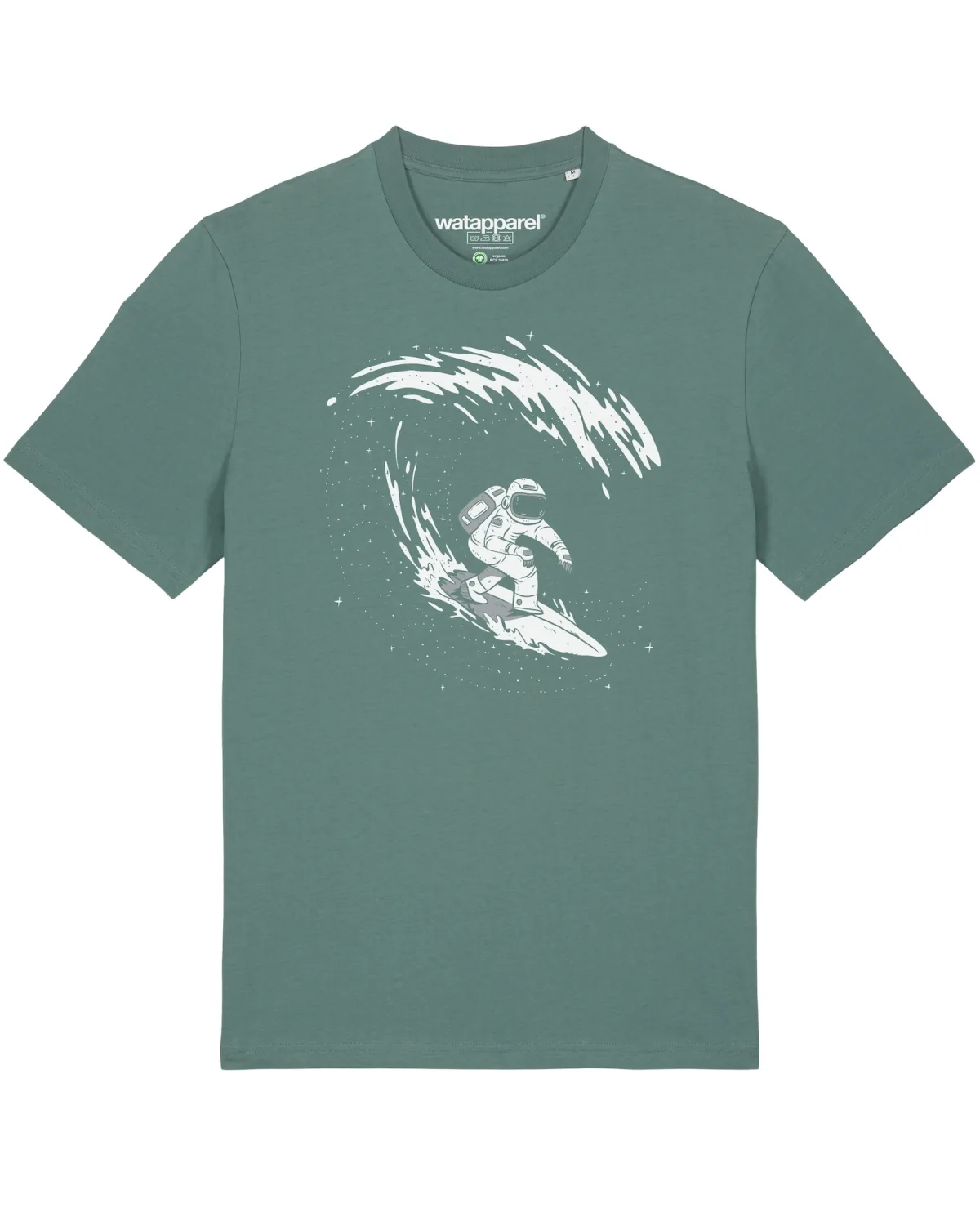 Specificaties: Watapparel Shirt ‘ Surfing Spaceman ‘ groen / gemengde kleuren