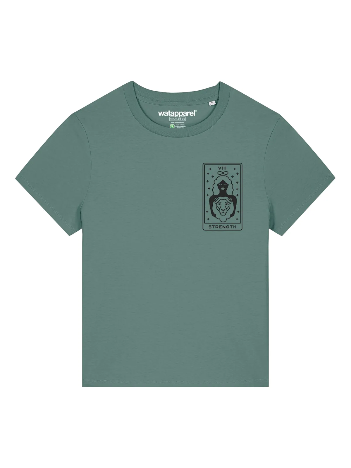 Specificaties: Watapparel Shirt ‘Tarot Strength’ groen / zwart