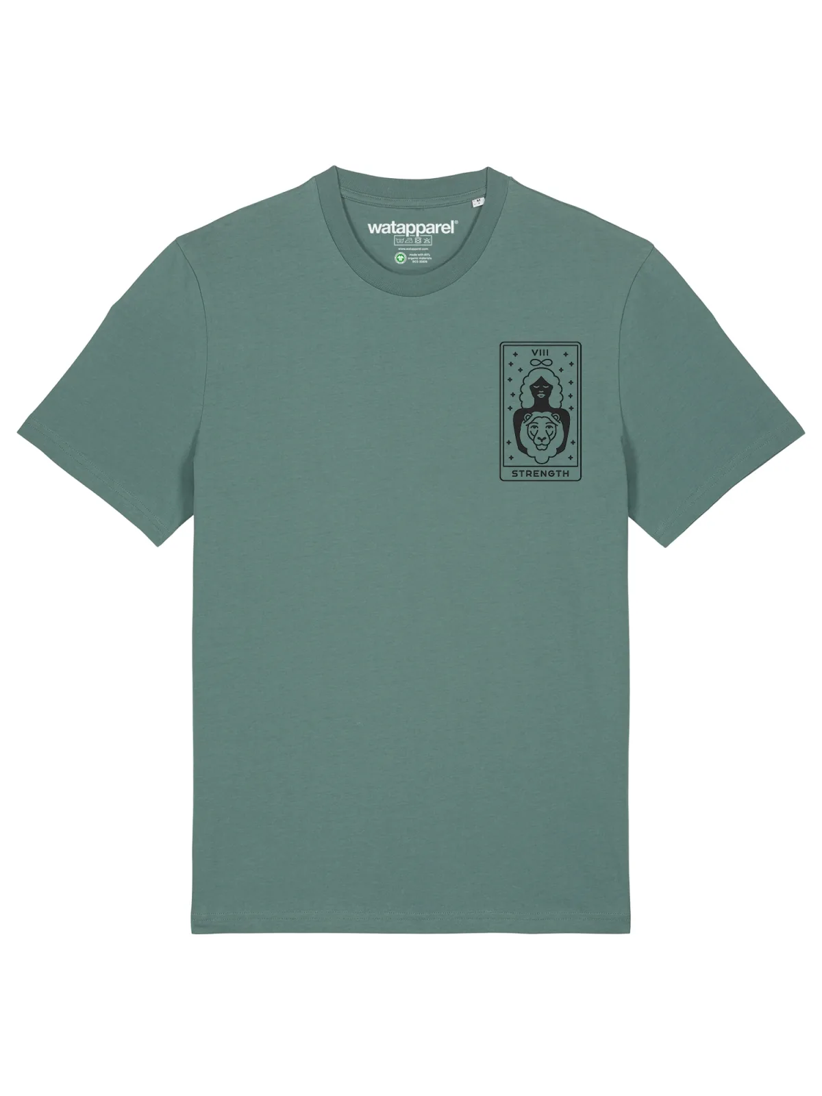 Specificaties: Watapparel Shirt ‘Tarot Strength’ groen / zwart