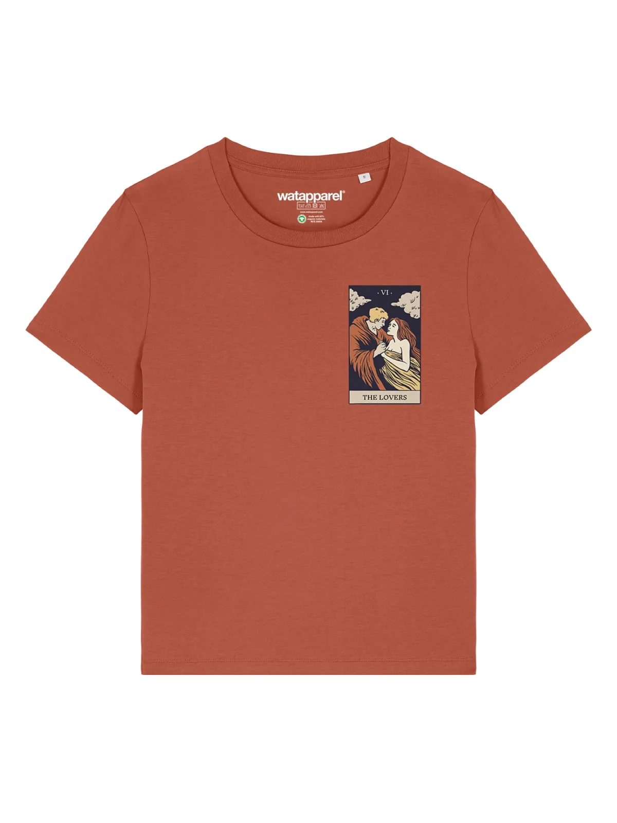 Specificaties: Watapparel Shirt ‘Tarot The Lovers’ beige / geel / roestrood / zwart