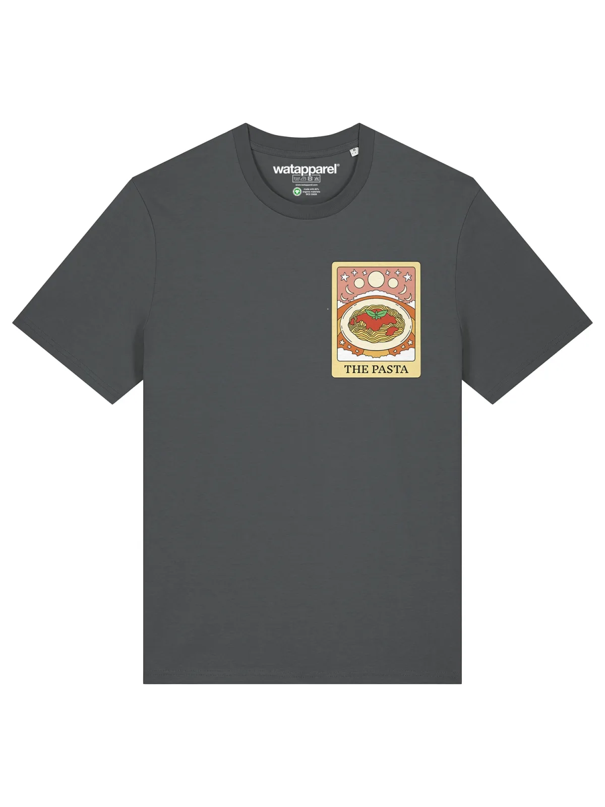 Specificaties: Watapparel Shirt ‘Tarot The Pasta’ lichtgeel / antraciet / oranje / wit