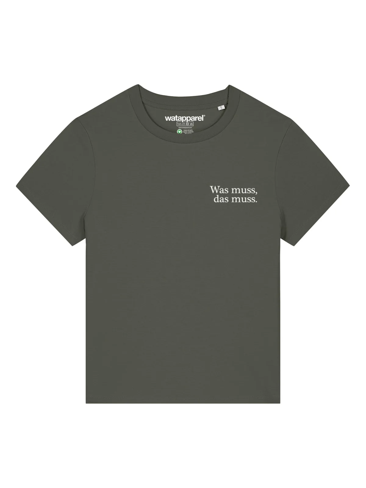 Watapparel Shirt ‘Was Muss Das Muss’ kaki / wit