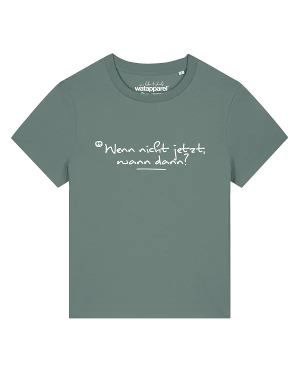 Watapparel Shirt 'Wenn Nicht Jetzt Wann Dann' jade groen /...