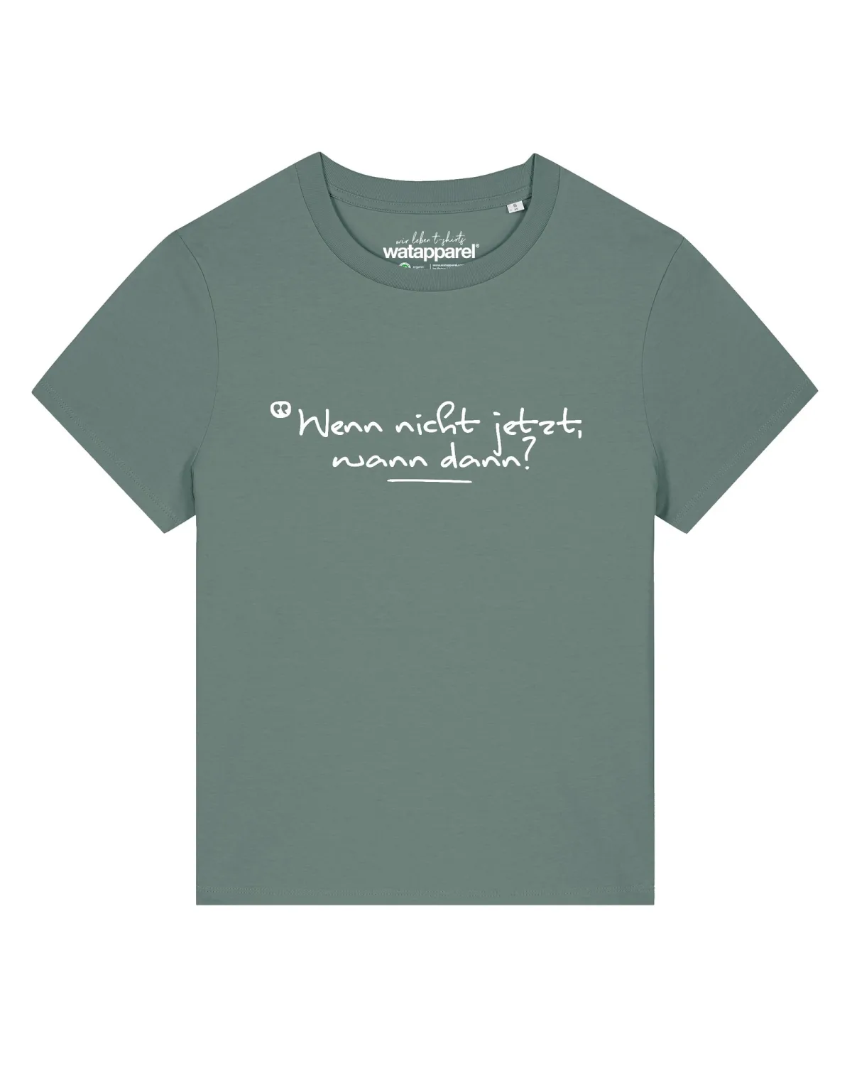 Watapparel Shirt ‘Wenn Nicht Jetzt Wann Dann’ jade groen / wit