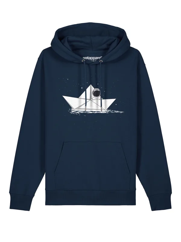 Watapparel Sweatshirt ‘ Astronaut in paper boat ‘ navy / wit