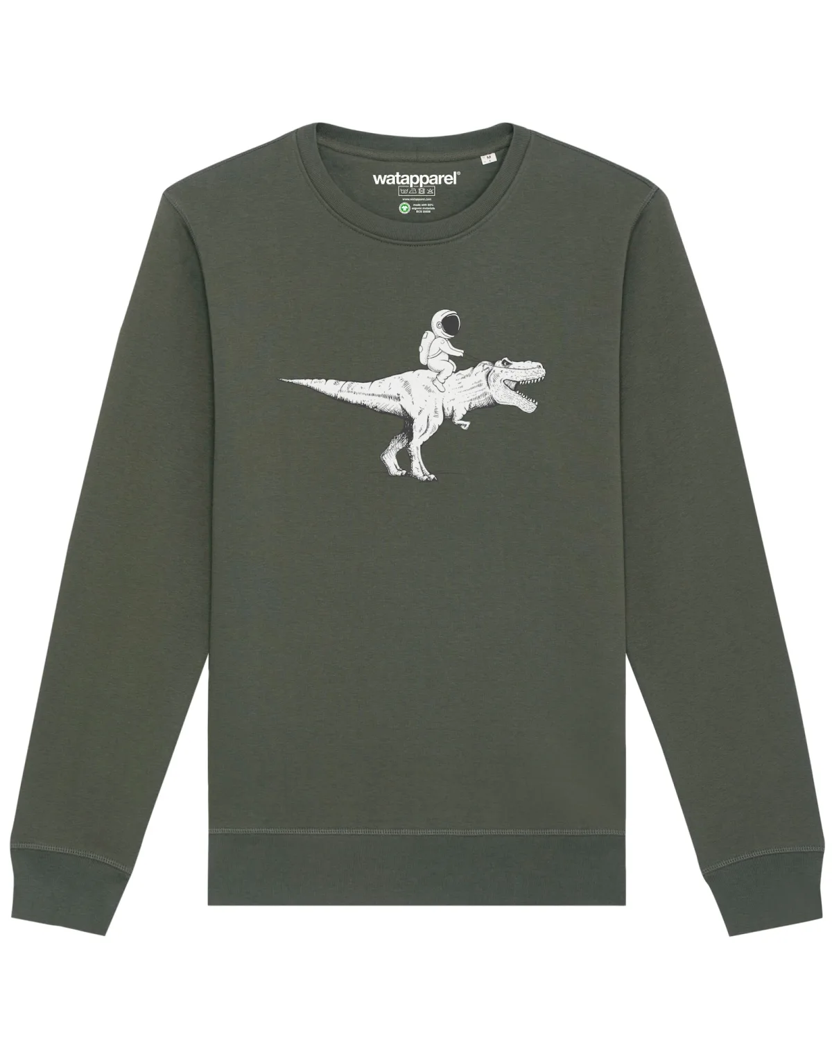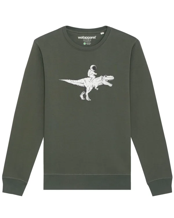 Watapparel Sweatshirt ' Astronaut on T-Rex ' kaki / wit...