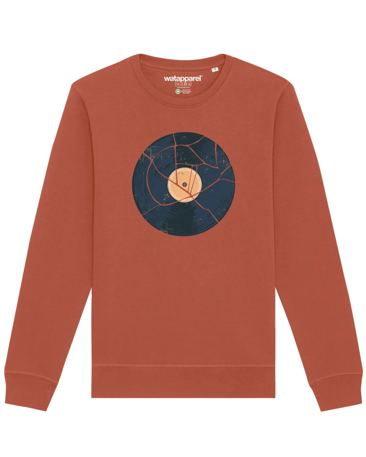 Specificaties: Watapparel Sweatshirt ‘ Broken Vinyl ‘ donkerblauw / lichtbruin / geel