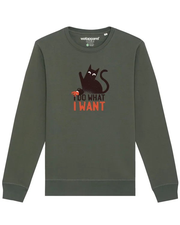 Specificaties: Watapparel Sweatshirt ‘ Cat ‘ kaki / gemengde kleuren