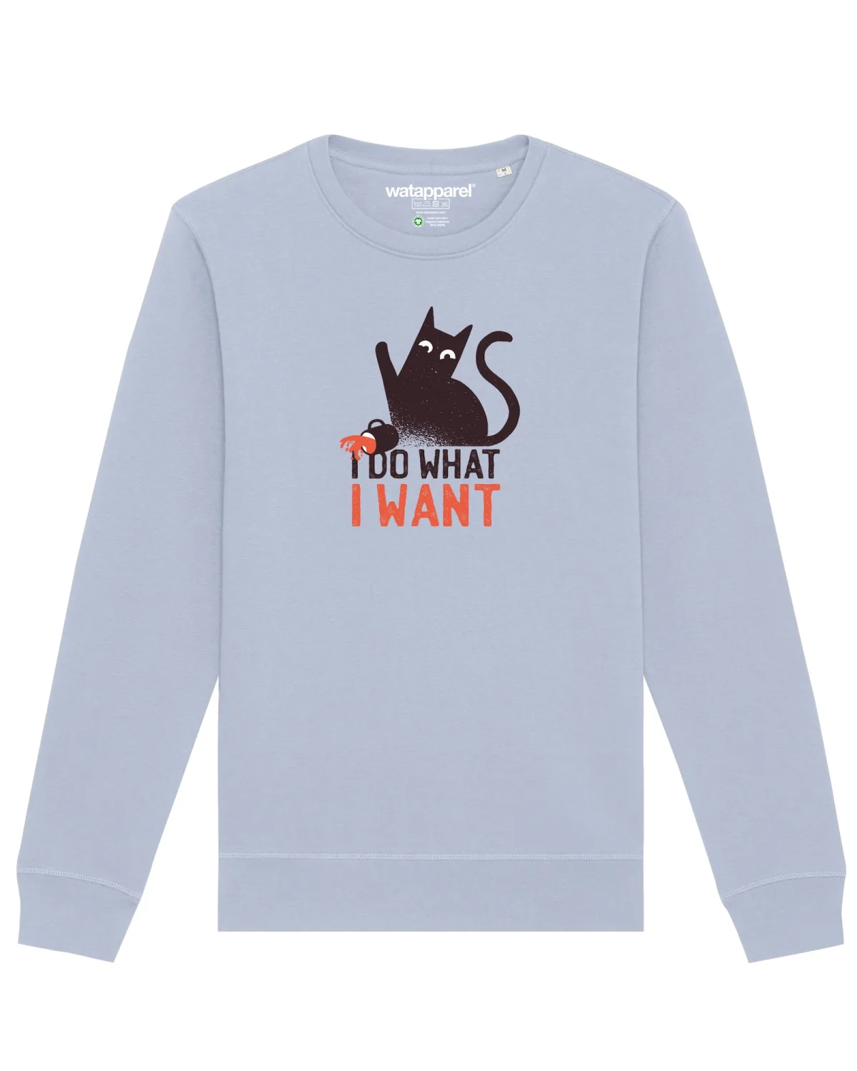 Specificaties: Watapparel Sweatshirt ‘Cat’ lichtblauw / oranje / zwart