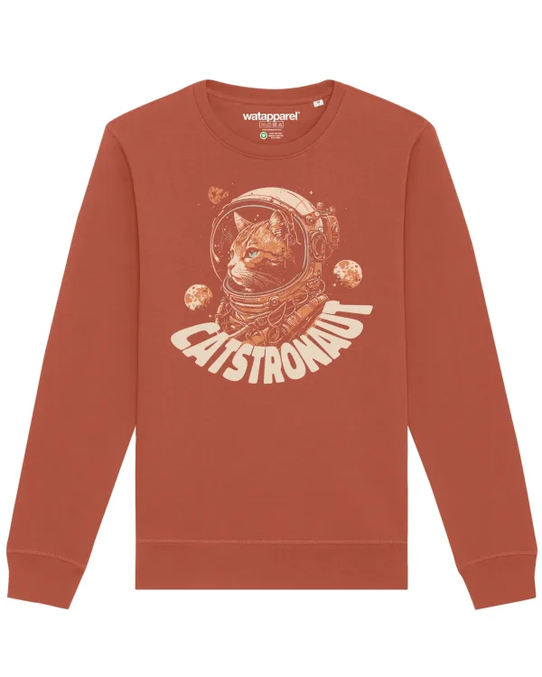 Specificaties: Watapparel Sweatshirt ‘Catstronaut’ beige / kastanjebruin