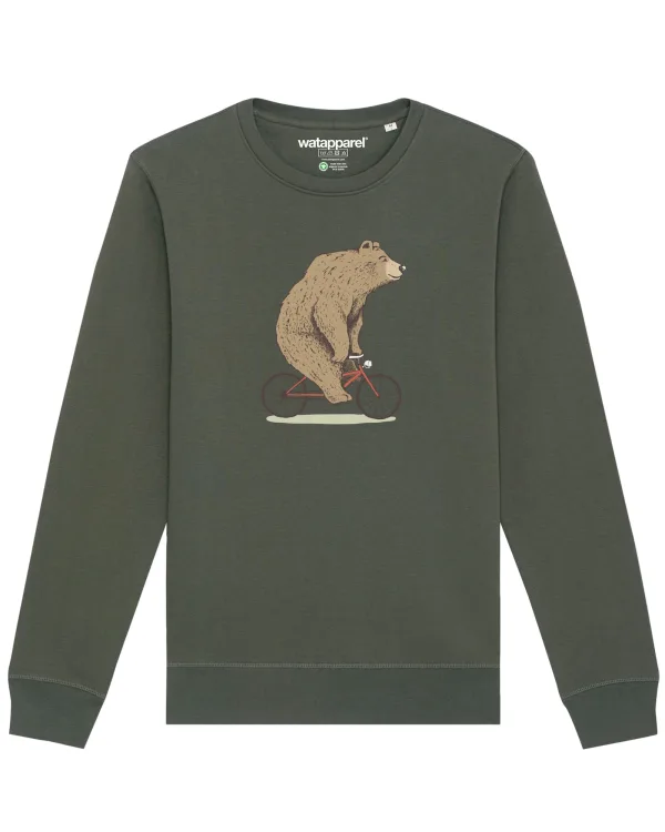 Watapparel Sweatshirt ‘ Fahrradbär ‘ bruin / olijfgroen / wit
