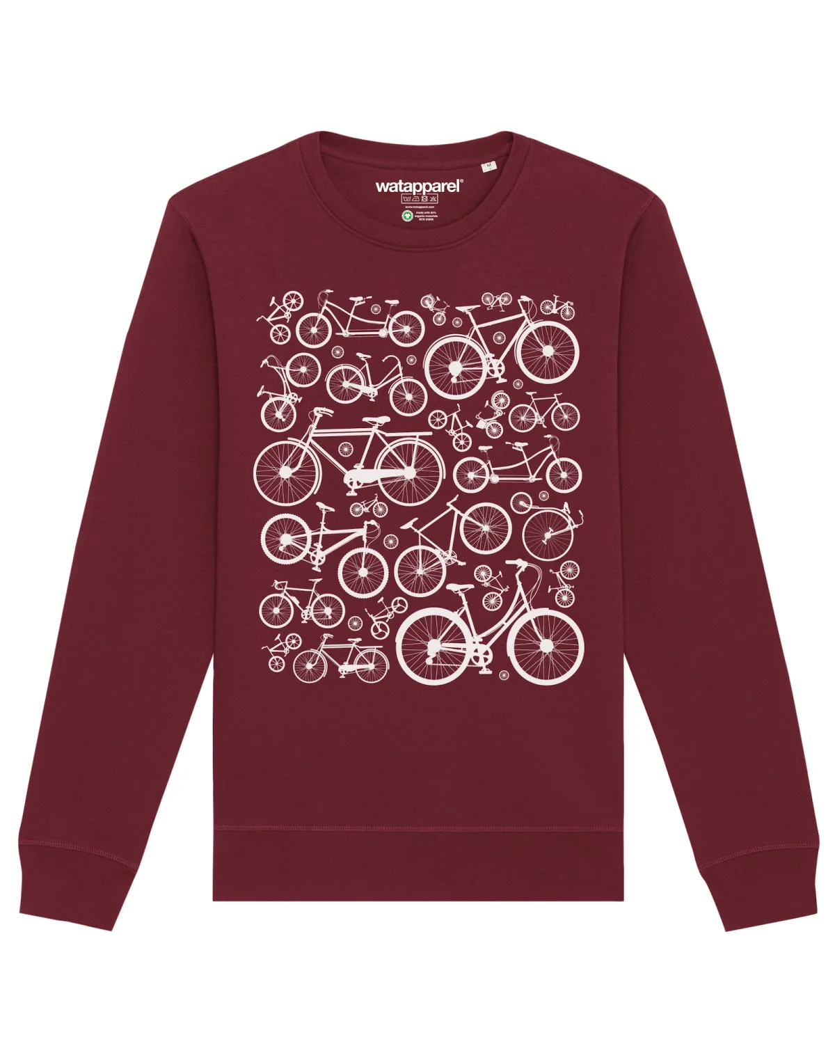 Specificaties: Watapparel Sweatshirt ‘ Fahrräder ‘ bourgogne / wit