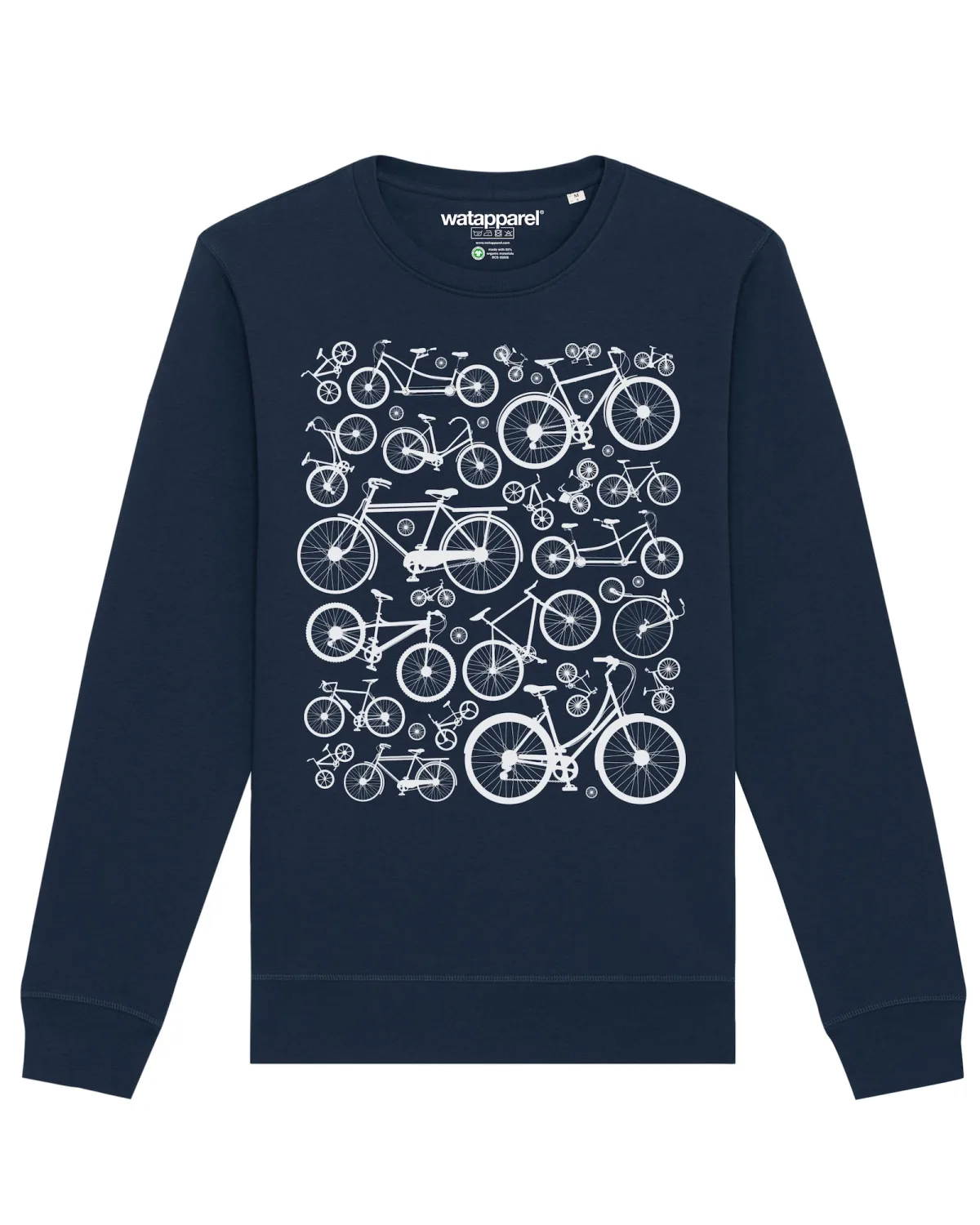 Specificaties: Watapparel Sweatshirt ‘ Fahrräder ‘ navy / wit gemêleerd