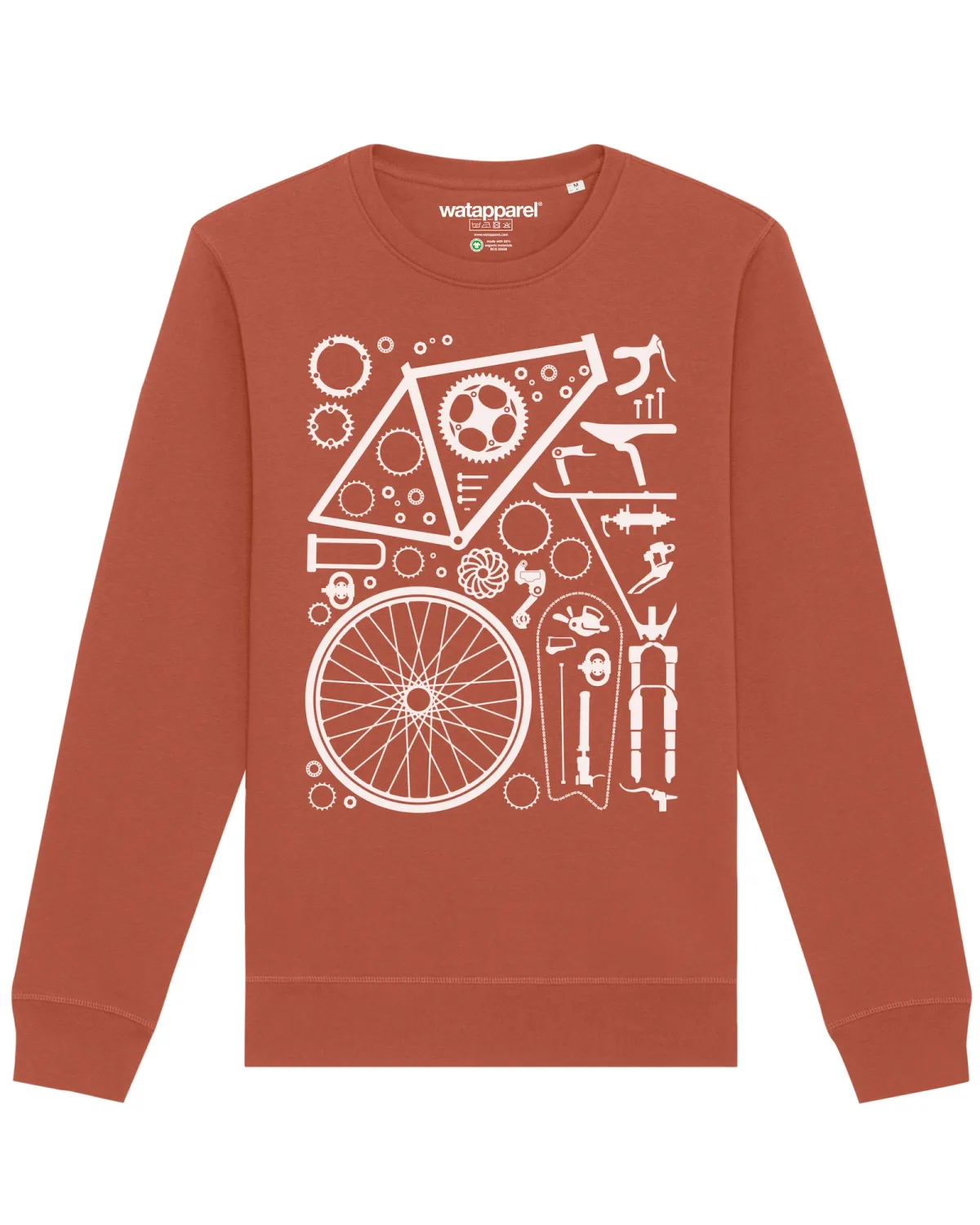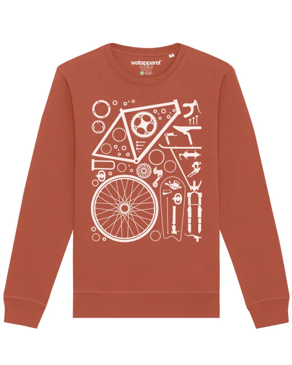Watapparel Sweatshirt ‘Fahrradteile’ roestbruin / offwhite