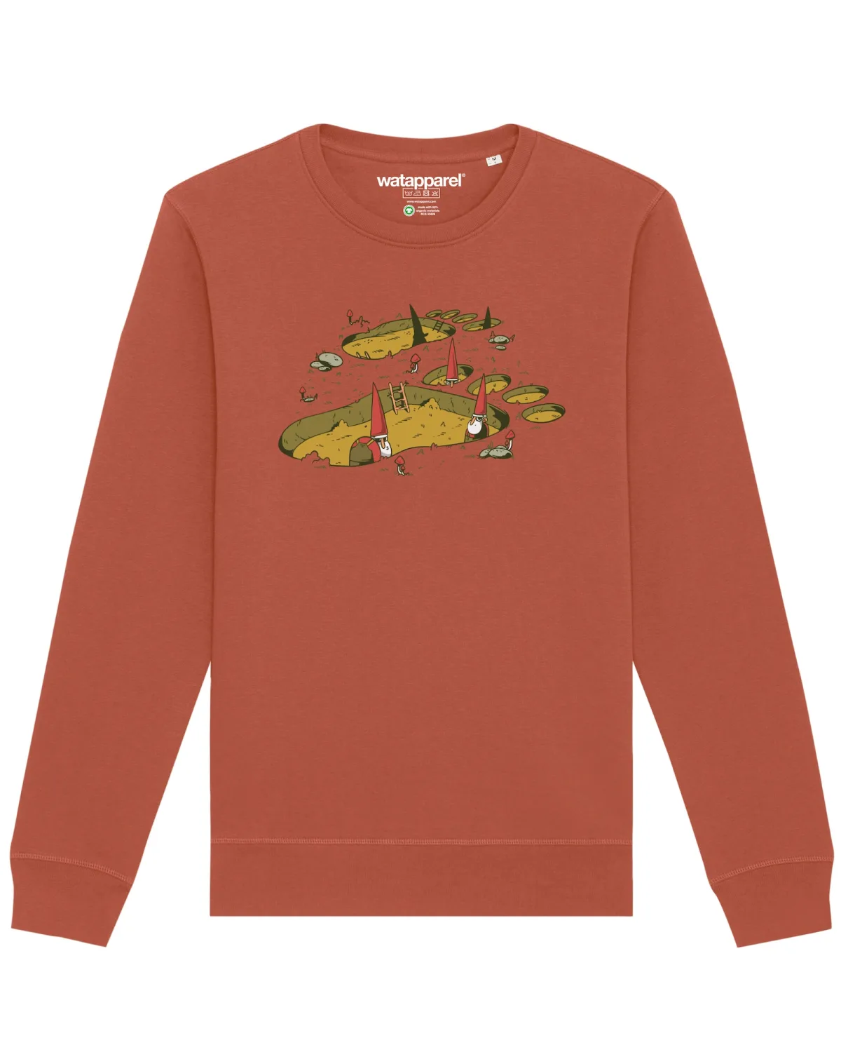 Specificaties: Watapparel Sweatshirt ‘Gnome Footprint’ roestbruin / gemengde kleuren