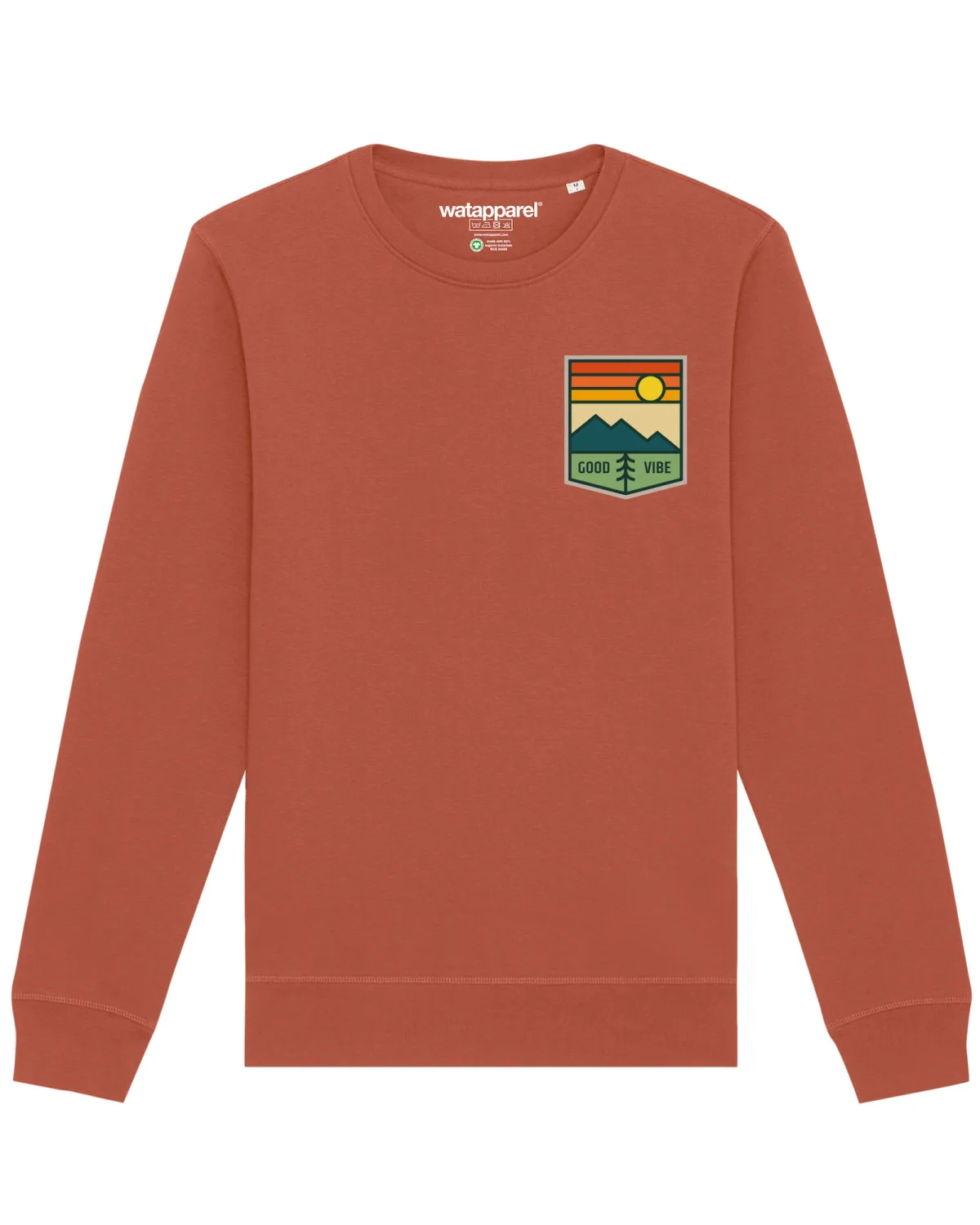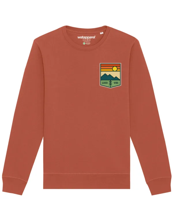Specificaties: Watapparel Sweatshirt ‘Good Vibe’ roestbruin / gemengde kleuren