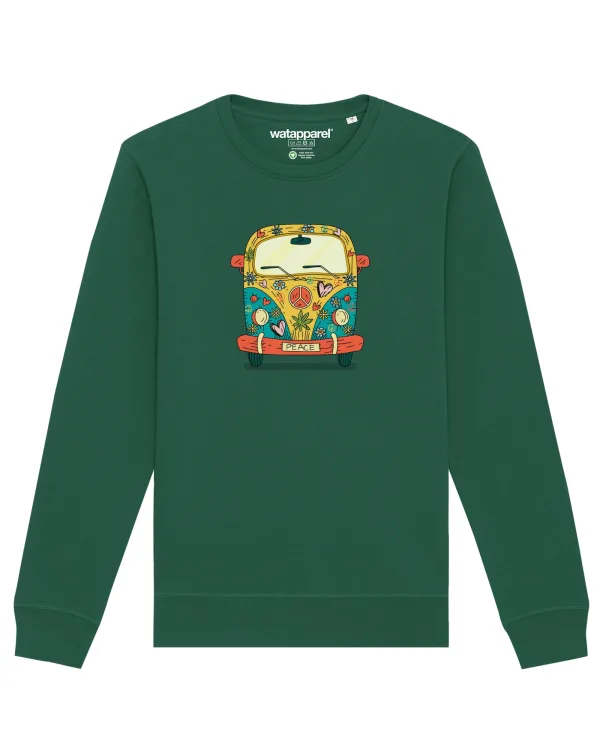 Watapparel Sweatshirt ‘ Hippies Bus ‘ donkergroen / gemengde kleuren Prijzen