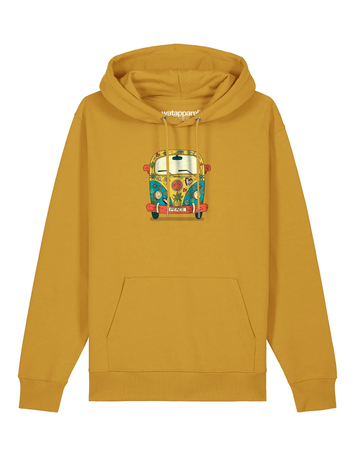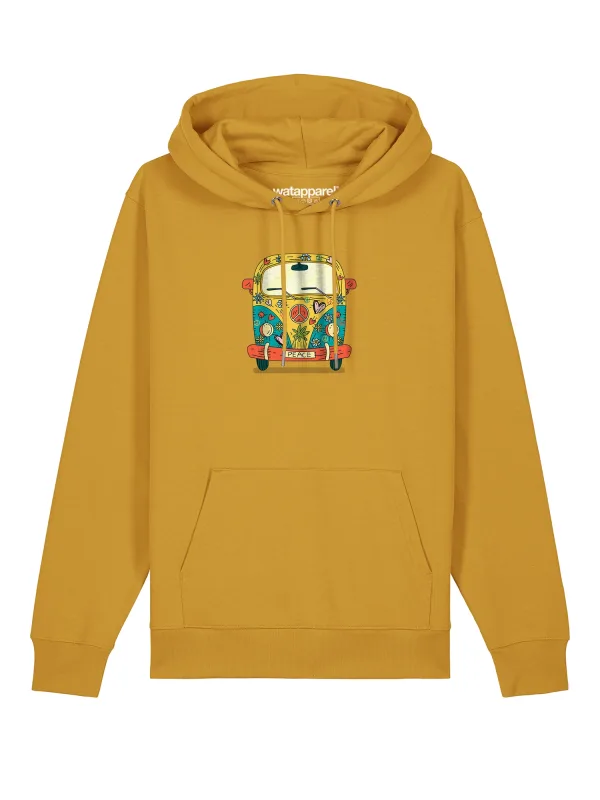 Specificaties: Watapparel Sweatshirt ‘ Hippies Bus ‘ oker / gemengde kleuren