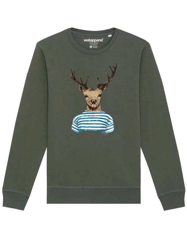 Watapparel Sweatshirt ‘ Hirsch ‘ kaki / gemengde kleuren