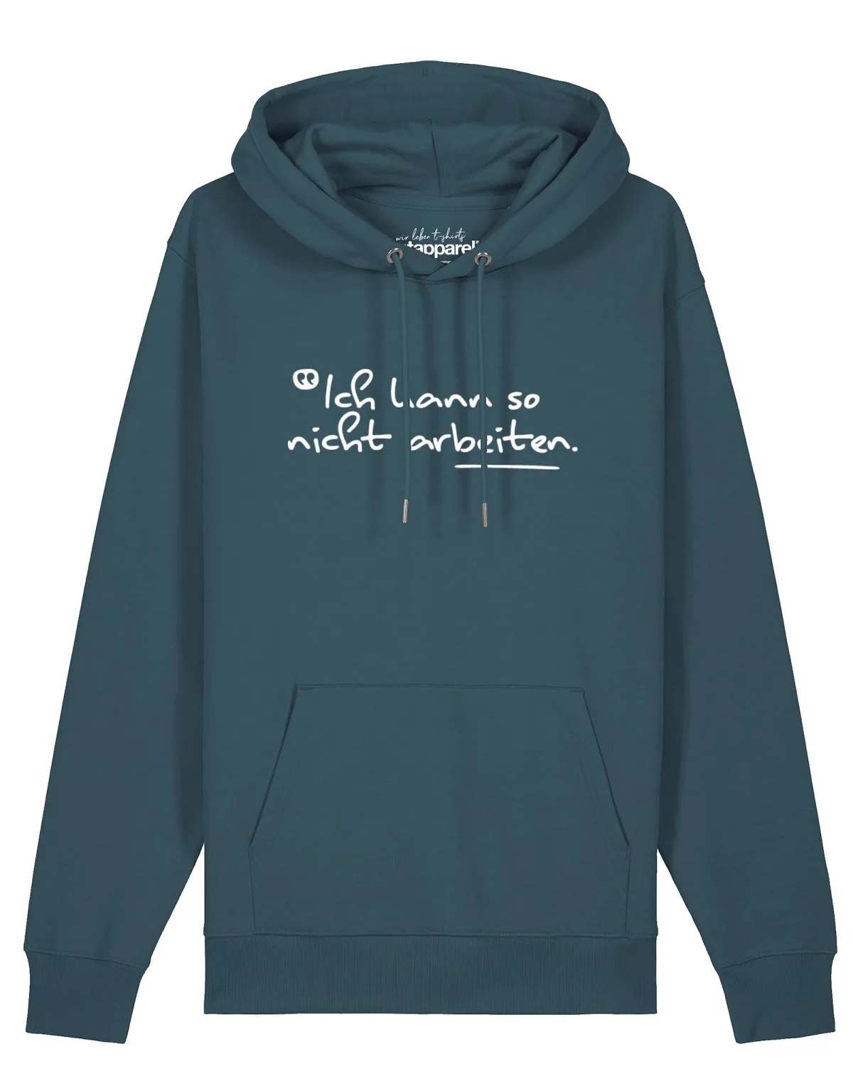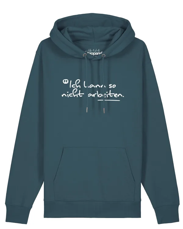Specificaties: Watapparel Sweatshirt ‘Ich kann so nicht arbeiten’ petrol / wit